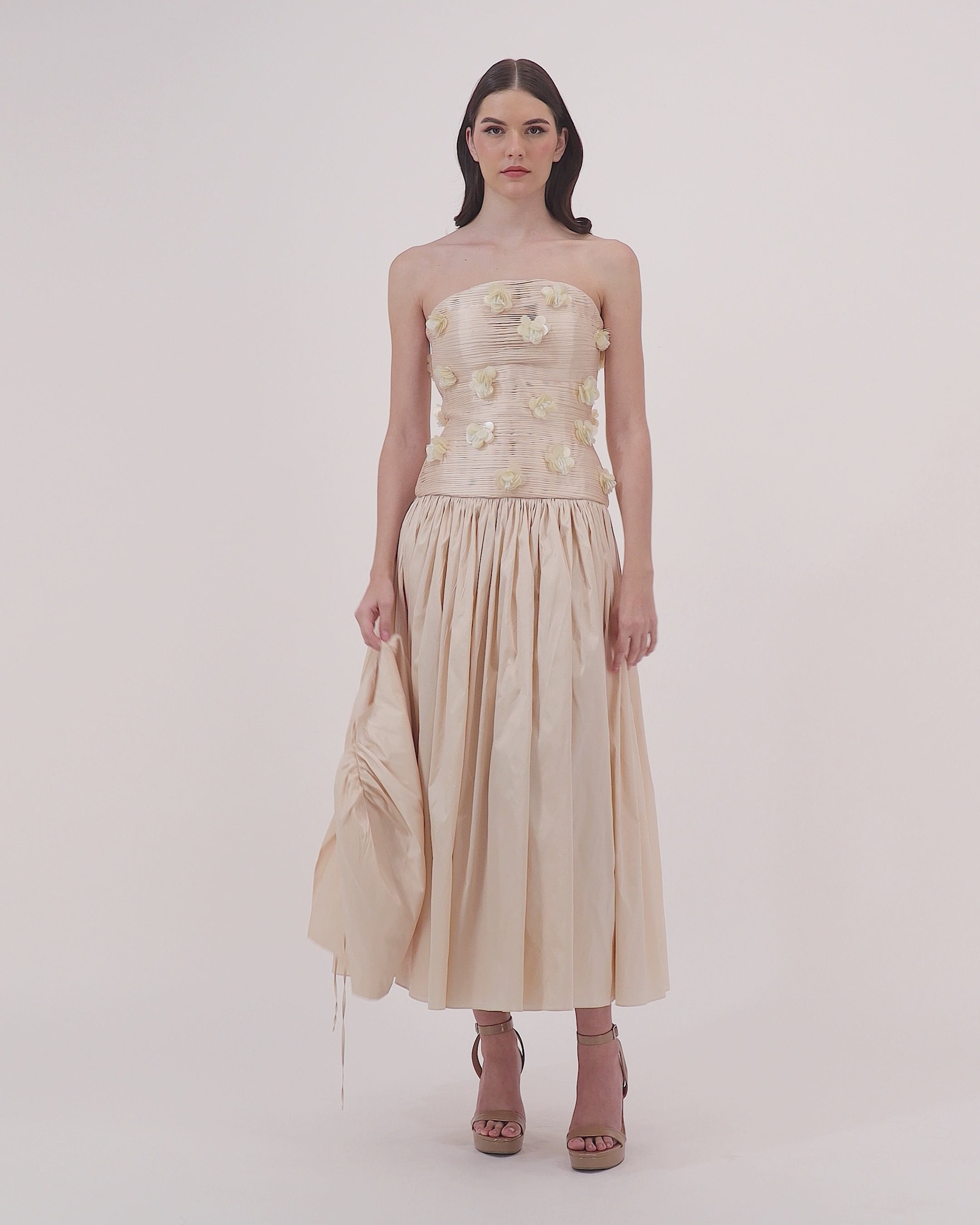 Indulge in elegance and sophistication with our exquisite taffeta bolero, the perfect cover-up companion for your special occasions. Matches with The Calla dress and The Camelia dress.