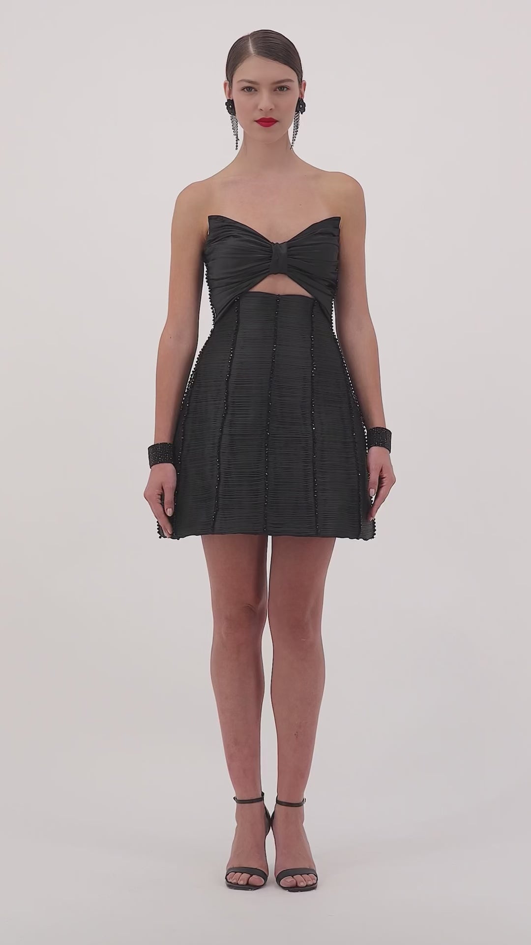 The 'Becky' brings glamour and femininity to new heights, featuring a structured silhouette decorated with delicate embellishments. Made with CECE signature pleated taffeta.