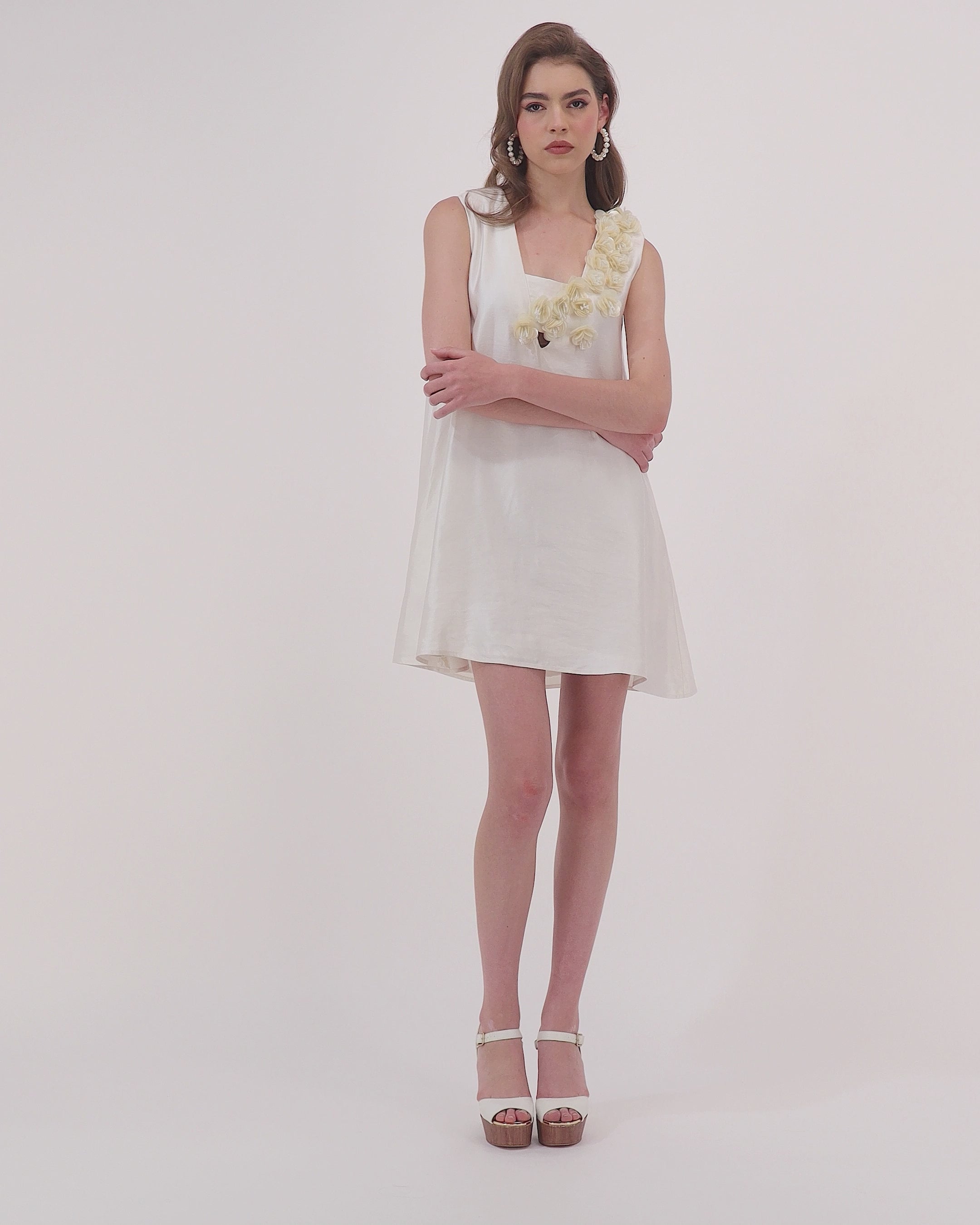 Introducing our newest must-have: the Ivory Mini, a testament to timeless elegance and modern sophistication. Crafted from luxurious glazed linen, this dress boasts a flattering A-line silhouette that accentuates your curves with effortless grace. What sets it apart? Delicate embroidered flowers cascade from the shoulders down to the bust, infusing the dress with a touch of whimsical charm and feminine allure. Whether you're attending a garden party or a stylish brunch, the Ivory Mini promises to turn heads and captivate hearts with its enchanting beauty.