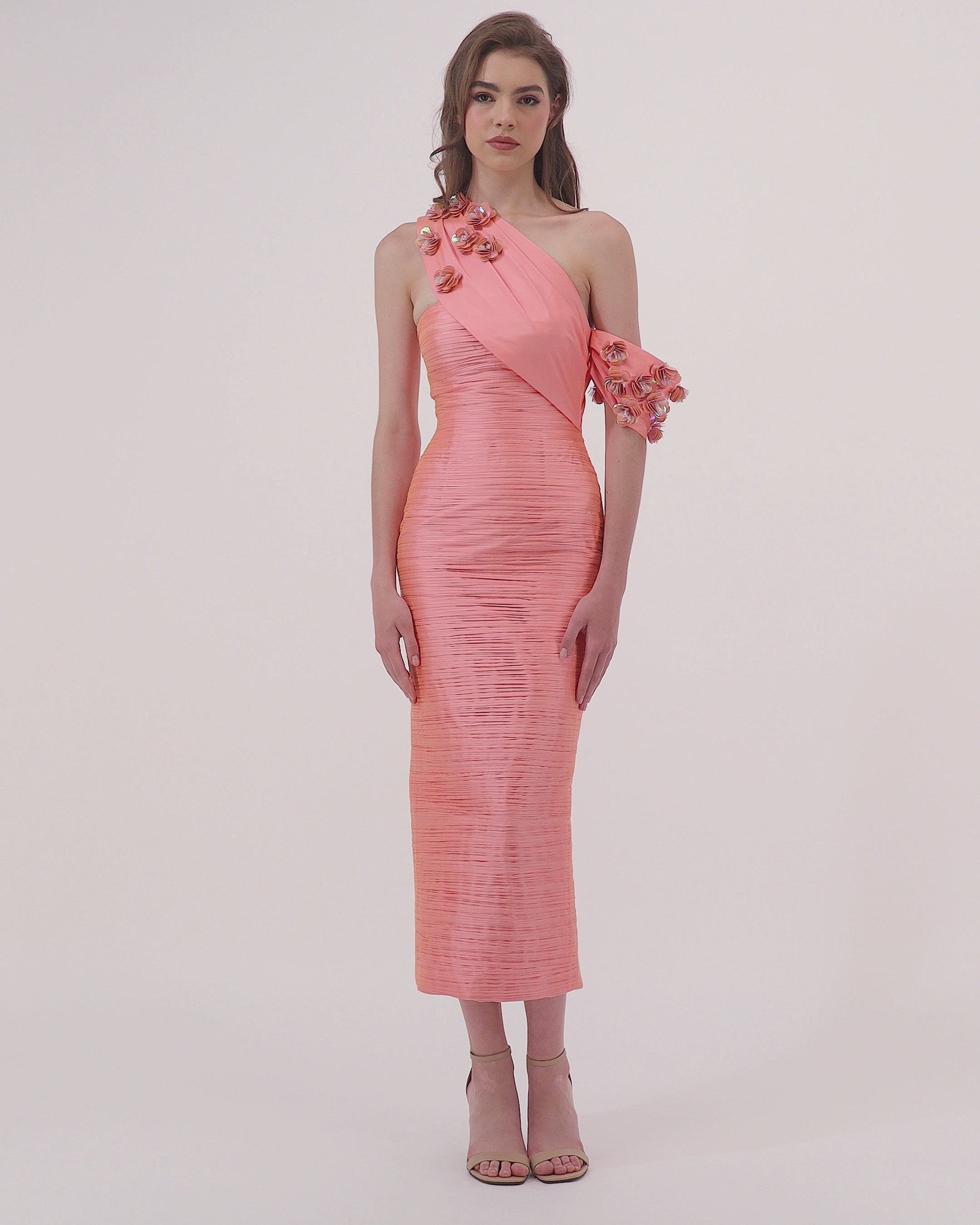 A midi sensation , offering a seamless blend of sass and timeless style. It is sculpted in the brand's signature taffeta and adorned by hand sewn red flowers.